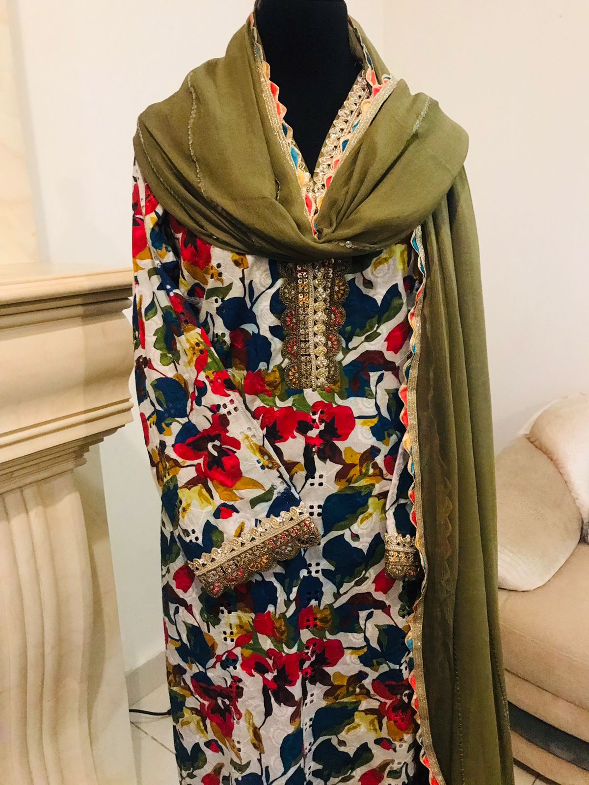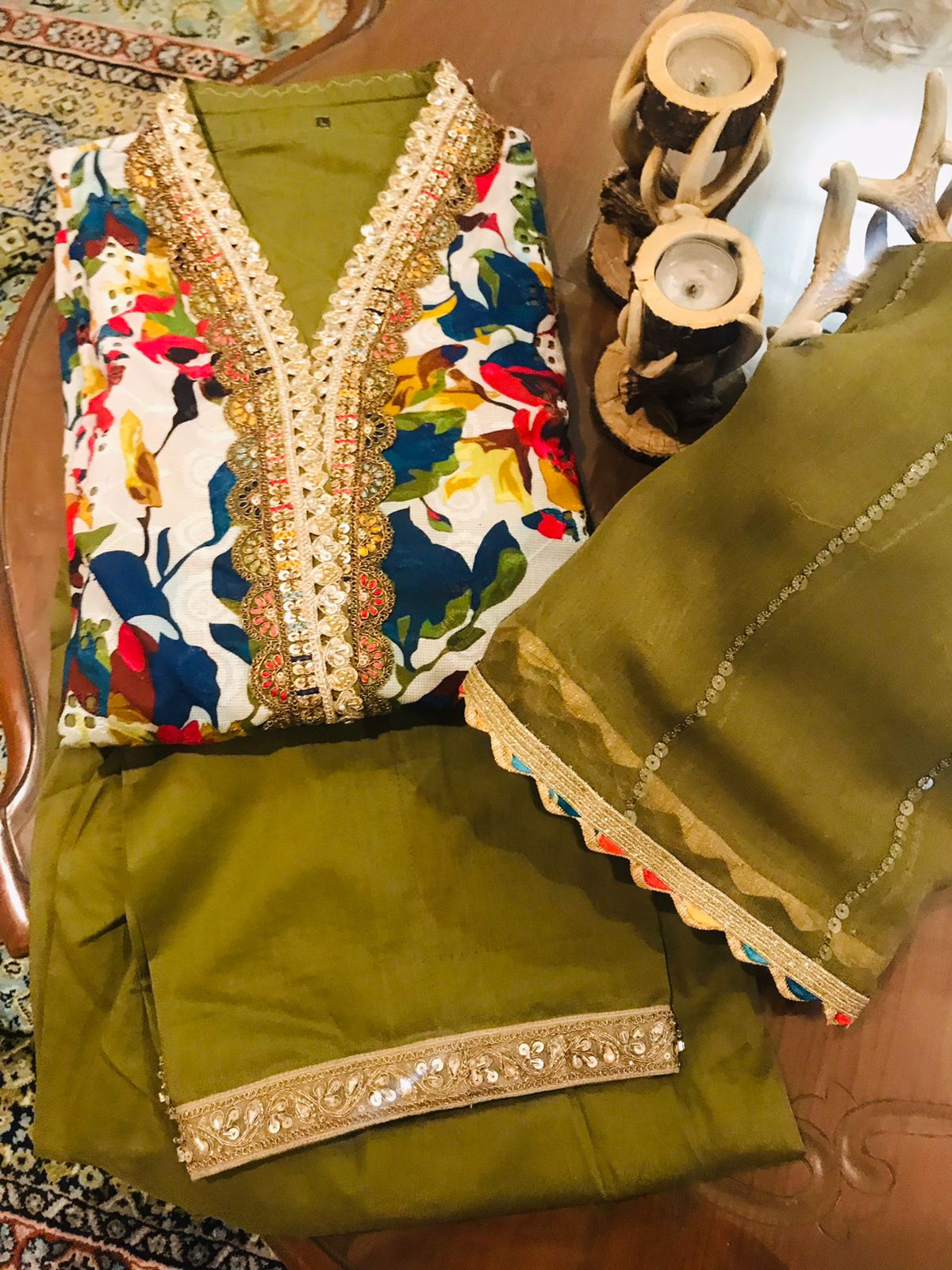 Olive Green Shafoon Dupaata