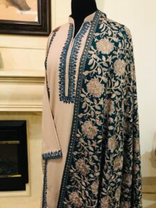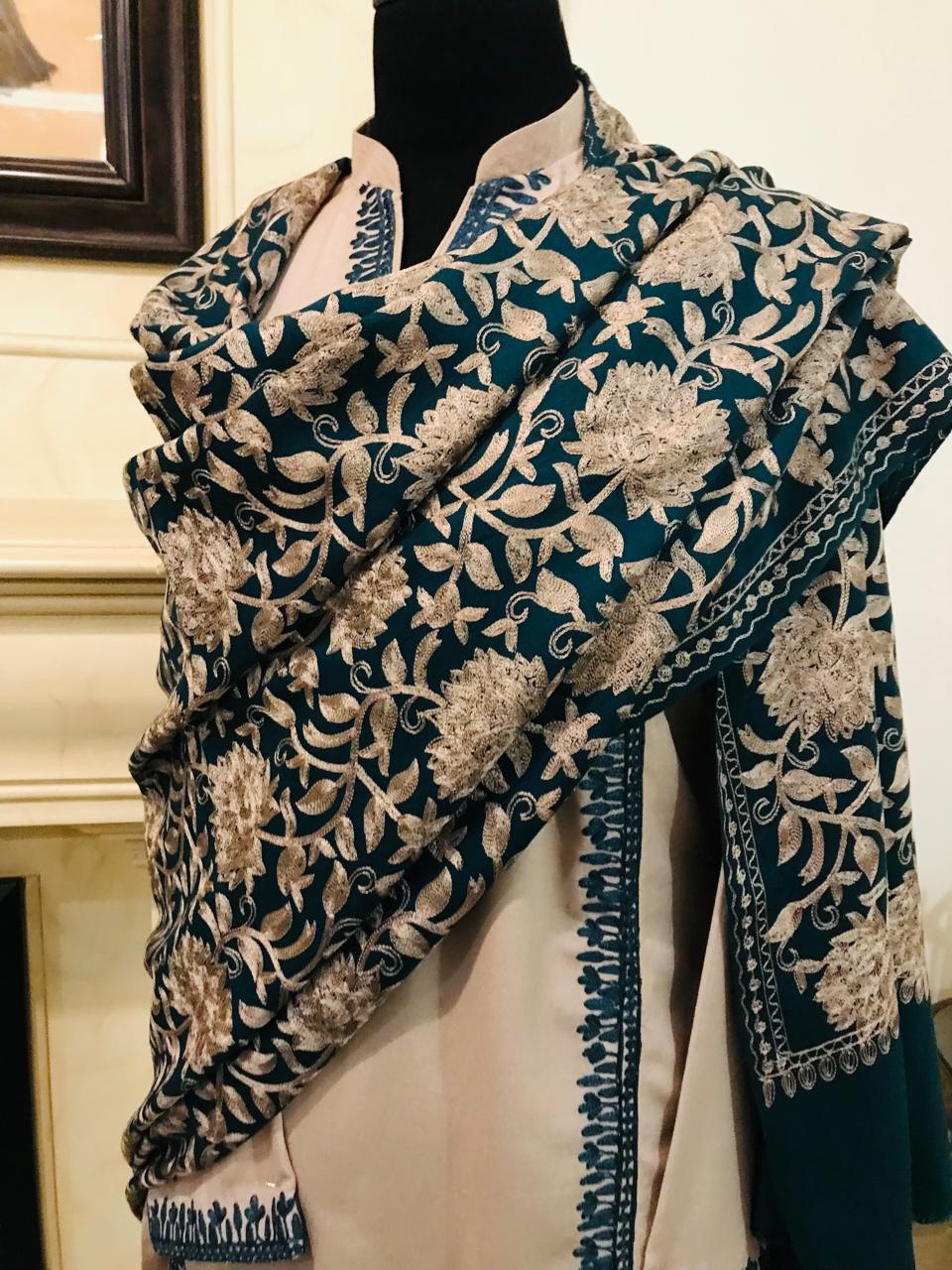 • Full Embroidered Pashmina Shawal. (Teal Blue)