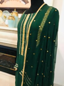 - Kalidar Shirt Embellished with beads and golden embroidery on front and sleeves.