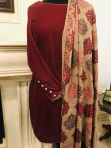 2 piece Velvet Dress with Shawal (Tea Pink)